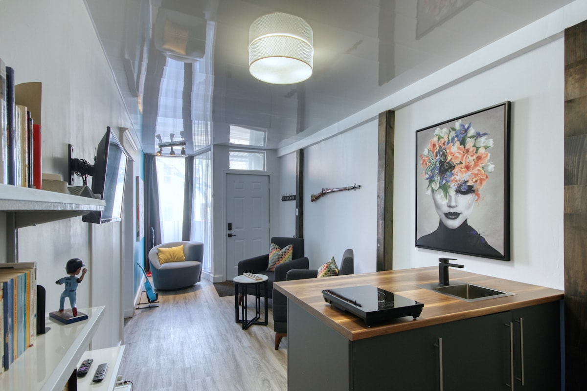 상징적인 임페리얼 벨 극장에서 몇 걸음 거리에 있는 퀘벡 시티의 활기찬 중심부에 위치한 아름다운 로프트에 오신 것을 환영합니다. 이 멋진 공간에서 편안함과 스타일이 조화를 이룹니다. 주요 하이라이트: 하루 종일 탐험을 마치고 전용 사우나에서 휴식을 취해보세요. TV에서 좋아하는 프로그램을 즐기세요. 초고속 인터넷을 제공합니다. 편리한 전용 주차장이 있어 스트레스 없는 숙박을 보장합니다. 세탁이 필요하신 경우, 숙소 내 세탁기와 휴대용 건조기를 제공합니다.
