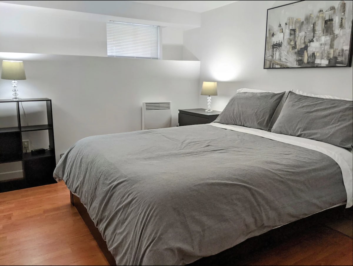 전용 출입구가 있는 지하에 위치한 이 조용하고 우아한 숙소에서 휴식을 취하고 긴장을 풀어보세요. 이 아파트는 퀘벡 공항과 백화점 근처에 있습니다. 길모퉁이에 위치한 대중교통을 통해 모든 축제에도 접근할 수 있습니다. 더 즐거운 경험을 제공하기 위해 여러 가지 주의를 기울였습니다. 잘 갖춰진 작업 공간 + 초고속 인터넷 연결(1Gb/s) = 재택 근무를 위한 최고의 장소 :) 즐거운 시간 보내세요!