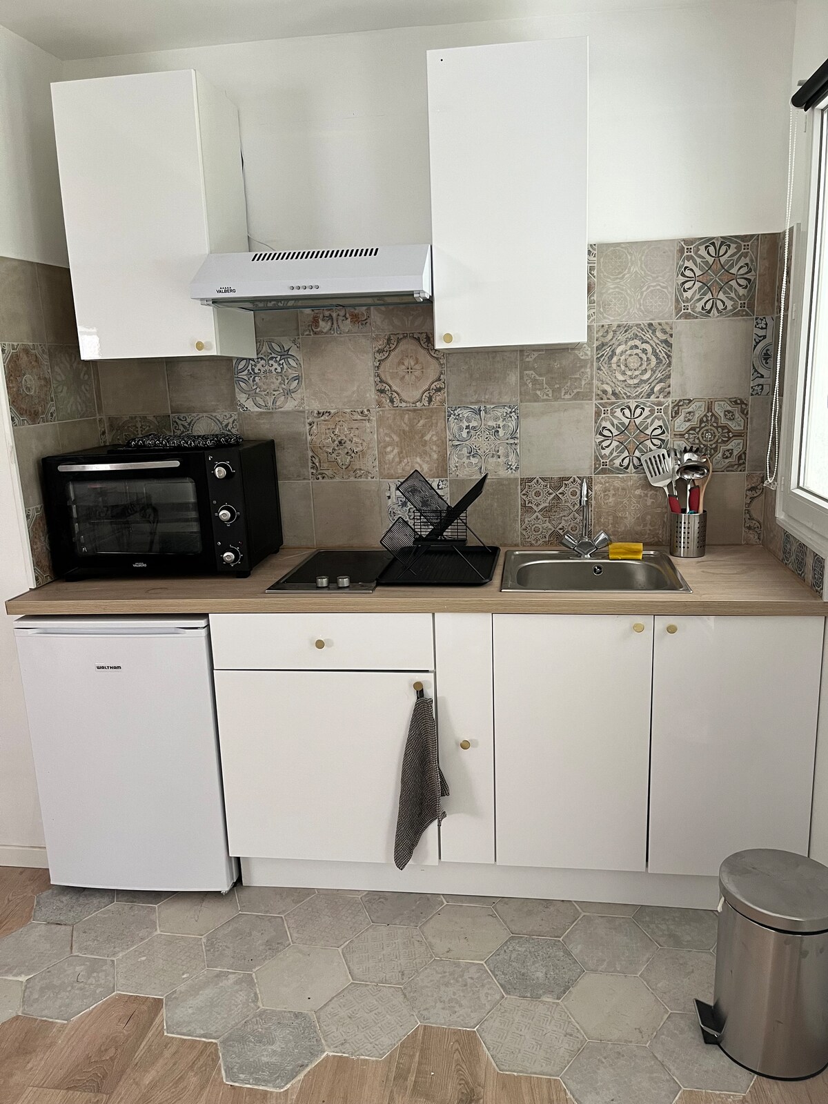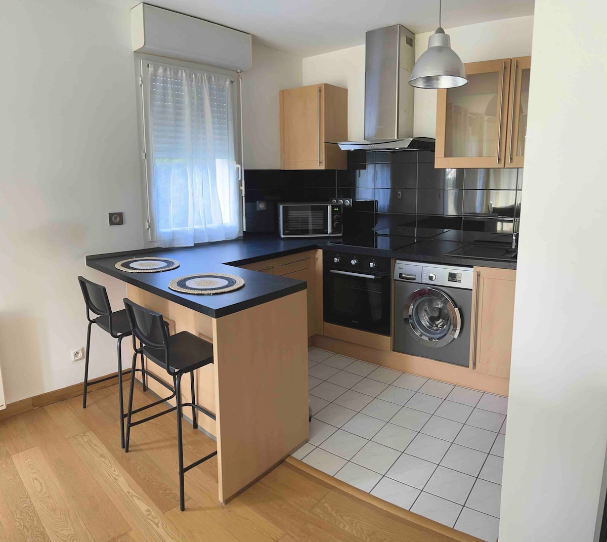 Studio de 20m2 avec jardin, indépendant au rez-de-jardin d’un villa . Cuisine équipée avec tous les ustensiles utiles pour cuisiner. Salle de bain séparée avec grandes serviettes. Grand lit (160x200), deux fauteuils avec une table. Possibilité de stationner dans la rue ! Un chargeur 7,5KWh pour la voiture électrique. Wifi fibre + Smart TV ! L'appartement est non fumeur. Nous offrons le thé, le café ainsi que le sucre, et spécialement les nouilles instantanées pour votre petit déjeuner !