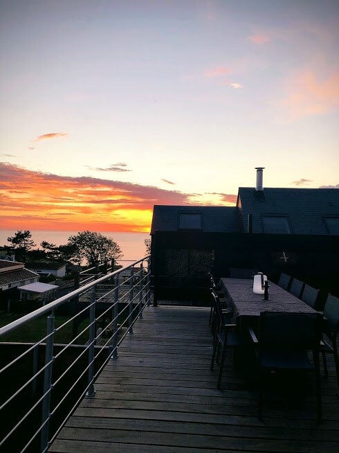 Vue mer Je vous propose de venir séjourner dans ce petit cocon offrant une vue plongeante sur l'horizon, entre falaises, étendue de sable et galets. Vous pourrez profiter des temps changeants au gré des marées et admirer le spectacle que nous offre le coucher de soleil, et le défilé des bateaux. La maison est située à 100 mètres de la plage, accessible à pied. Vous profiterez de la terrasse exposée Sud, pour des repas en famille ou entre amis, vue sur la mer ou dans le séjour au coin du feu.