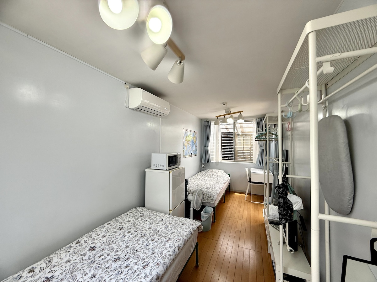 Enjoy a private stay in a licensed accommodation next to a 24-hour Lawson. Just 30 minutes by train to Tokyo Station. Free bikes, Wi-Fi, Amazon TV, and a complimentary taxi from Kawaguchi Station on check-in day. This popular prefab has no kitchen, so you’ll likely eat out or use ready-made meals. The room is simple, with two beds and two small desks—no extra facilities. In the evening, unwind with your favorite drink.