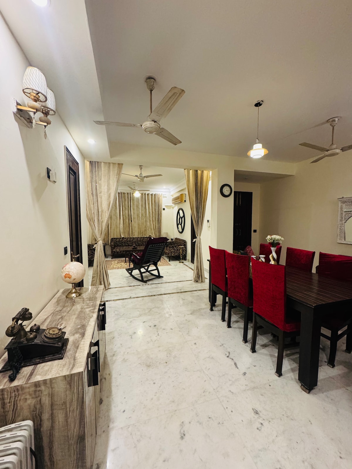 Do you want to bond with family, friends or colleagues in the lap of nature in New Delhi? Do you wish to experience the ideal blend of old-world charm and hospitality with all modern amenities? Do you desire to take a stroll in sprawling lawns under fruit trees or lie in wait for peacocks? If YES then this independent 3-bedroom apartment of Shiv Niwas villa, with private balconies & roof terrace, smart locks, property-wide high-speed Wi-Fi, free car parking & caring lady caretaker-cooks BECKONS!