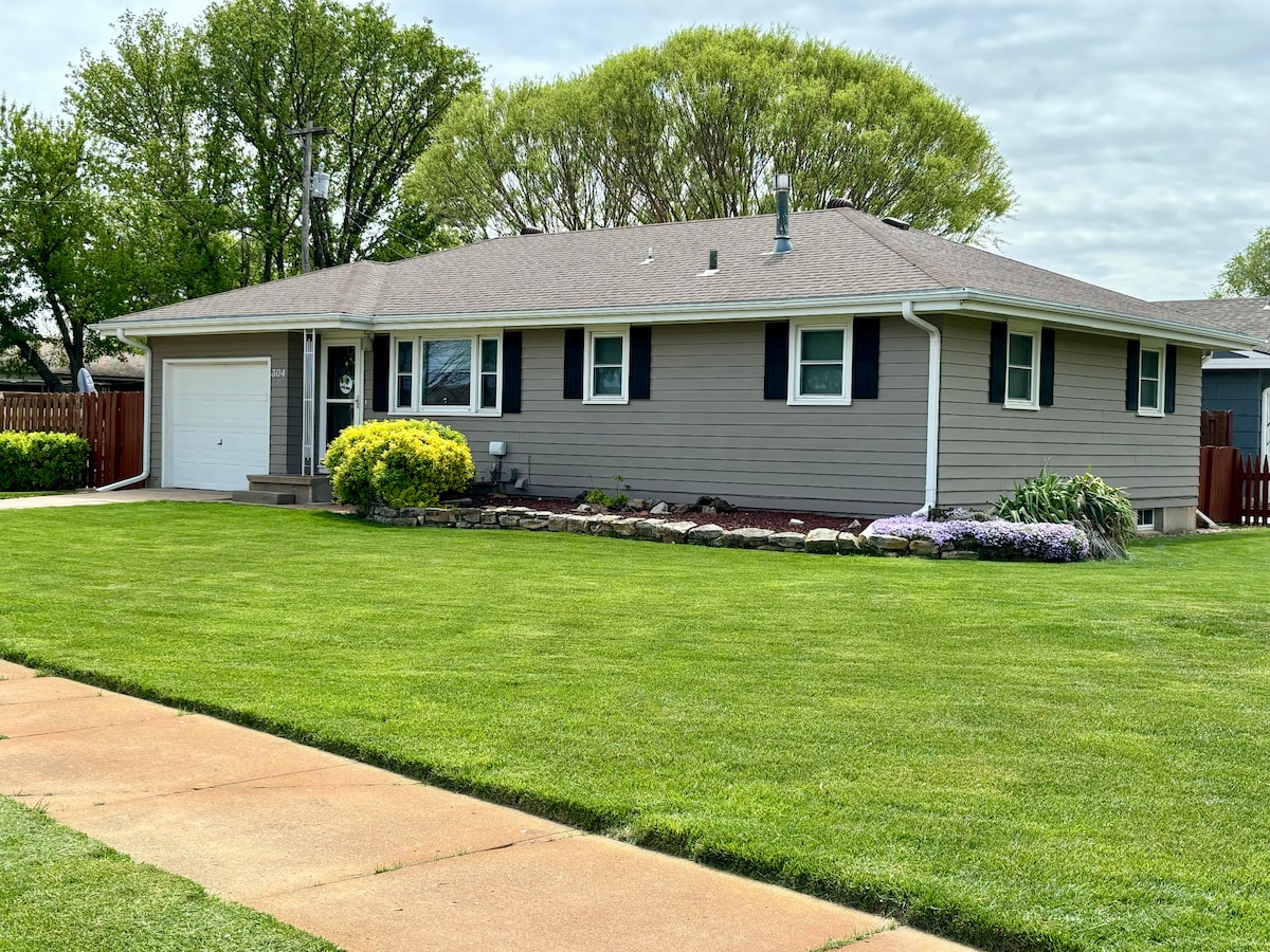 맥퍼슨에서 불과 5분 거리에 있는 한적한 곳에 있습니다. 전용 야외 출입구로 프라이버시를 즐기고 지하실 전체를 단독으로 사용하세요! 거실에서 대형 스크린 TV와 와이파이로 휴식을 취해보세요. 주방에서 식사 비용을 절약하고 세탁기/건조기로 세탁을 해보세요. 아이들과 함께 여행하는 경우 에어 매트리스를 이용할 수 있습니다. 뒷마당은 놀이터 장비와 농구장이 있는 학교와 인접해 있습니다. 반려동물이 돌아다닐 수 있는 밖의 공간.