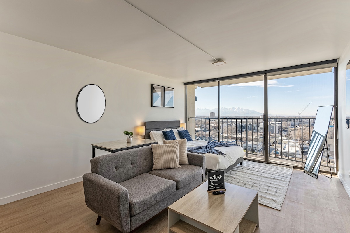 델타 아레나에서 몇 분 거리에 있는 솔트레이크시티 도심의 스튜디오에 들어서면 도시 생활과 편안함이 어우러집니다. - 3명 수면 | 스튜디오 | 퀸사이즈 침대 1개 + 에어 매트리스 | 욕실 1개 - 주방: 가스레인지, 오븐, 전자레인지, 커피 - 거실 공간에 소파, 스마트 TV, 와이파이 구비 - 세탁기, 건조기, 에어컨 - 헬스장, 당구대, 엘리베이터 및 노상 주차