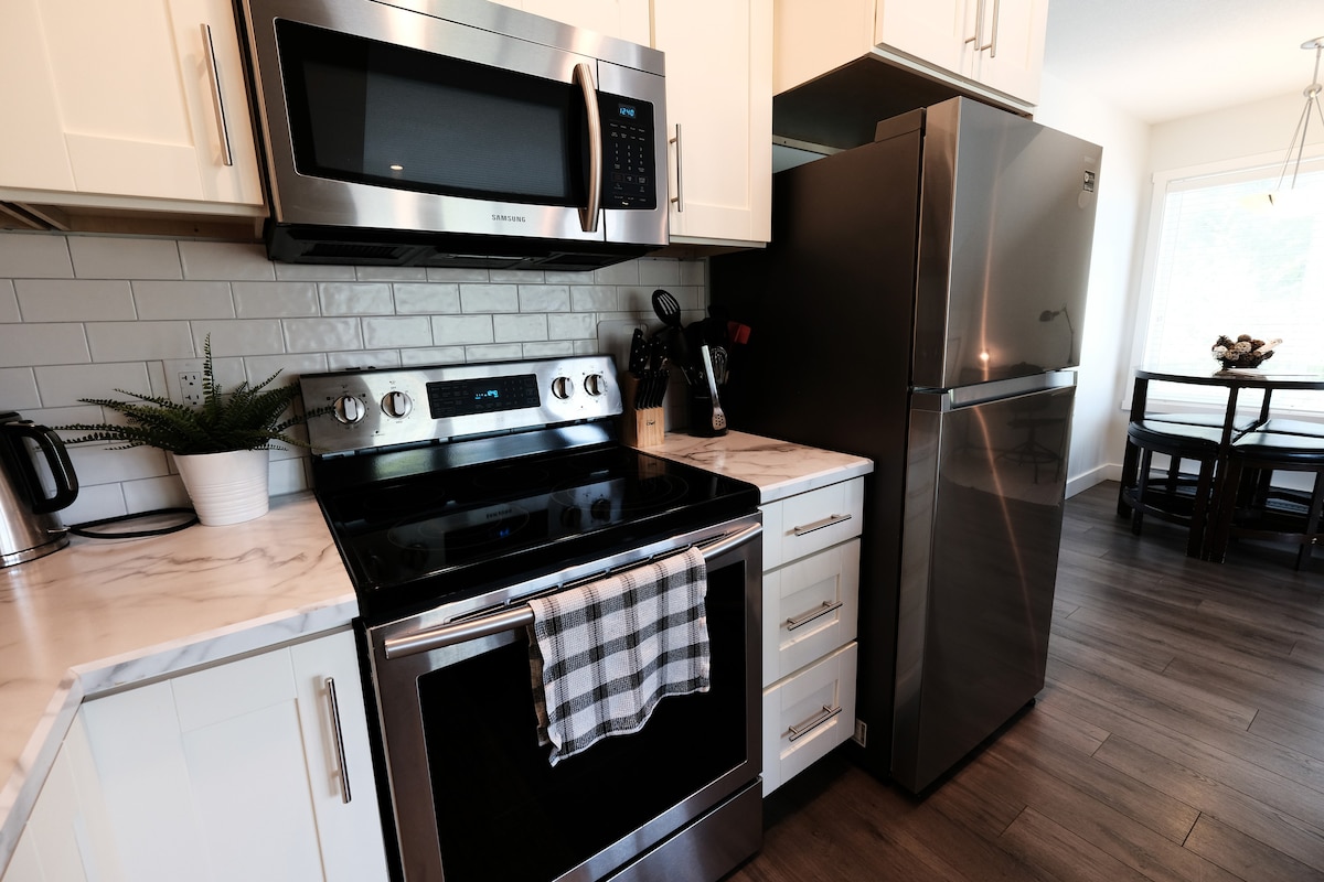 Escape to our cosy studio cabin on beautiful St. Mary Lake. This thoughtfully designed space offers everything you need to unwind, featuring a warm wood stove and a comfortable, open layout. Step outside to your private patio for a relaxing read, or a soak in your own Goodland wood-fired hot tub under the stars. Simple, serene, and inviting—perfect for a lakeside retreat.