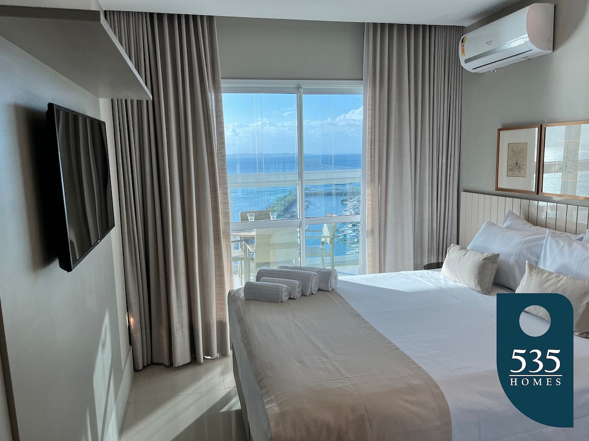 Apart decorado com vista magnรญfica da Baรญa de Todos-os-Santos, em Ondina, no circuรญto do carnaval, perto do Farol da Barra e Rio Vermelho. Duas suรญtes com ar, sala, cozinha, Wi-Fi, serviรงo de camareira, recepรงรฃo 24h e estacionamento rotativo na frete do Apart. Camas novas, roupa de cama e banho. Smart tv 43, geladeira, fogรฃo, sofรก-cama, micro-ondas, liquidificador, sanduicheira, cafeteiras: nespresso e arno e utencรญlios de cozinha. Piscinas, bar, padaria, retaurantes, lojas, galeria e salรฃo.