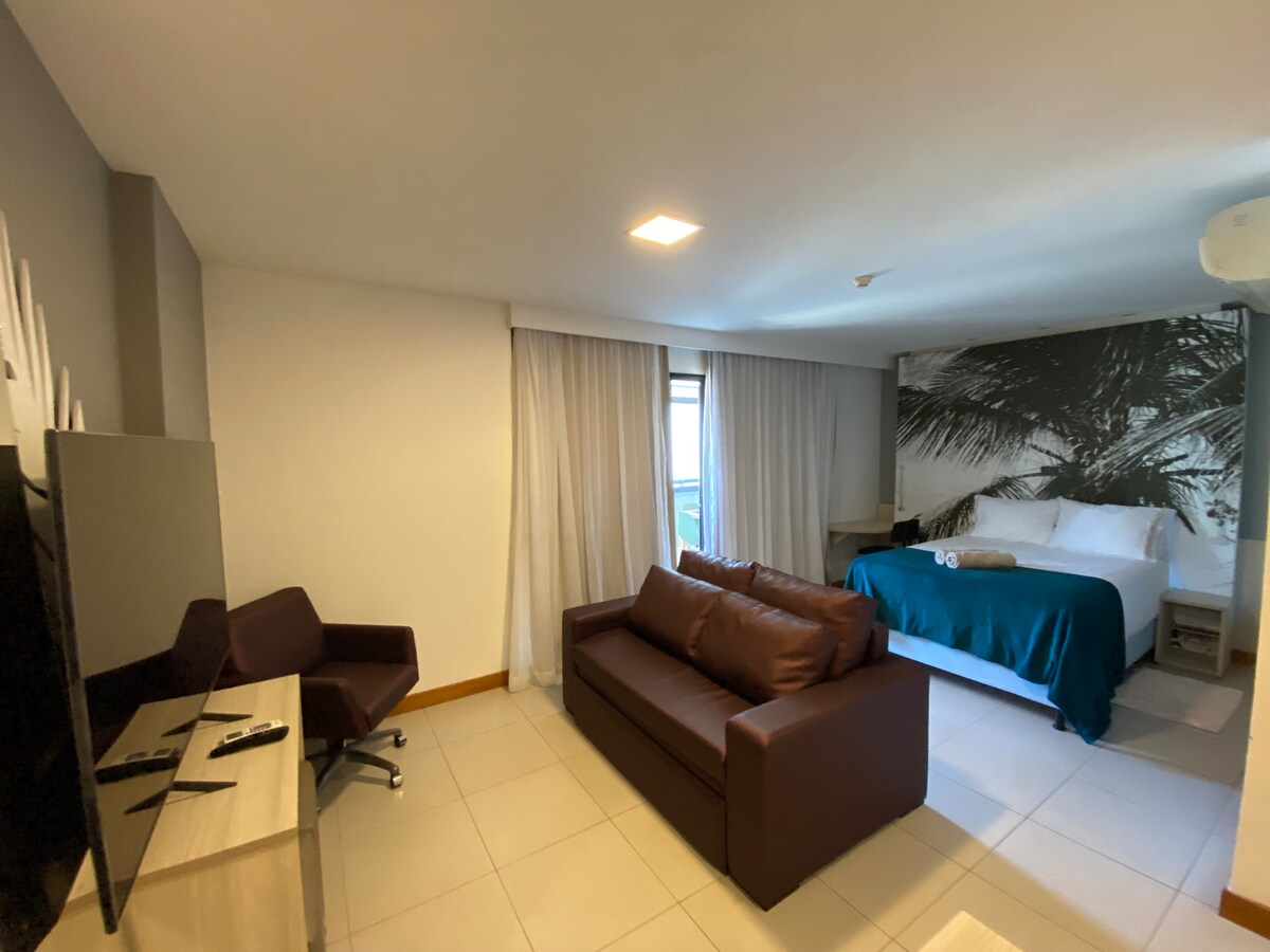 살바도르 바이아에 있는 아름다운 바다 전망을 자랑하는 가구가 완비된 아파트.