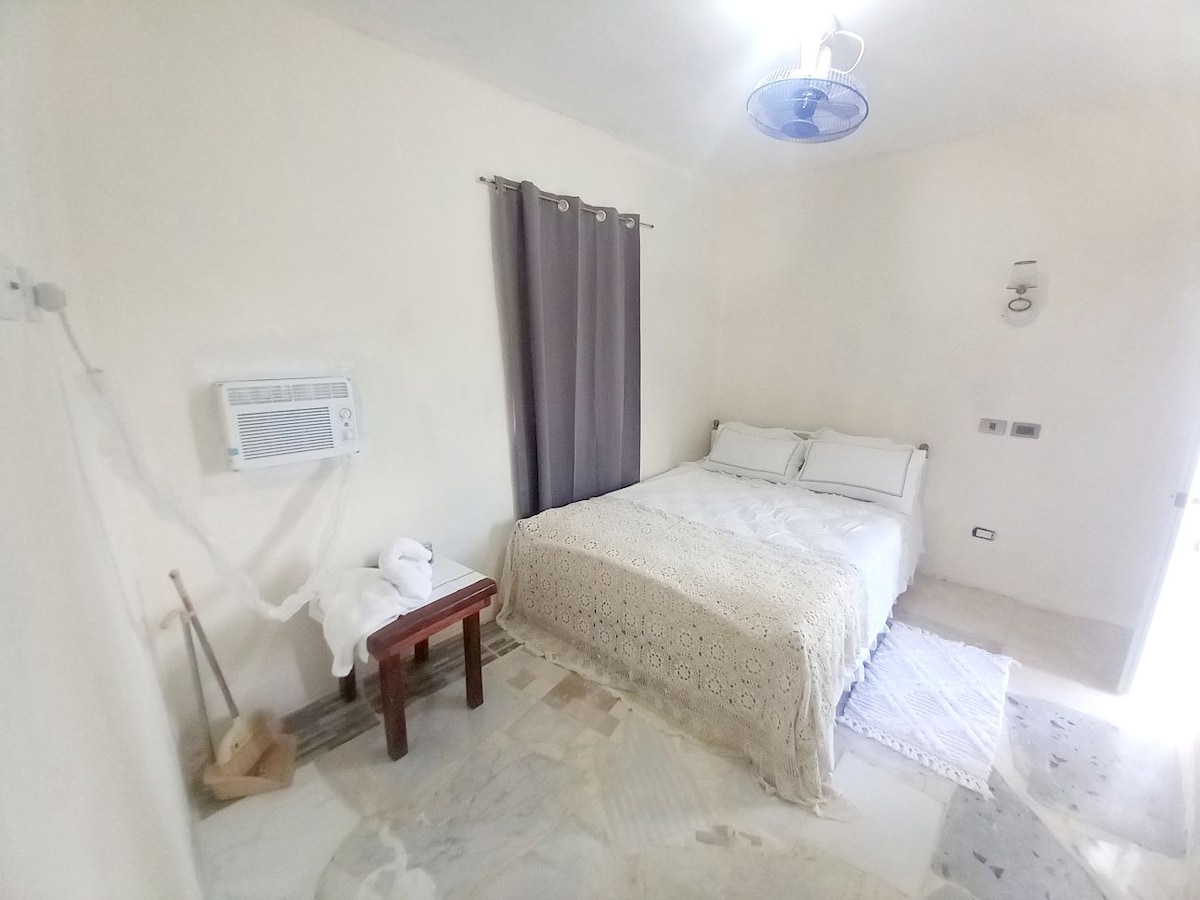750ft/250m to the BEACH Playa Popy. Tropical style bungalow in a small B&B of 3 bungalows. Features an outdoor patio facing a lush garden with natural swimming pool. King size bed, daily room service, full bathroom with toiletries, ceiling fan and A/C. Secured parking area. Breakfast available(extra). Common fridge/freezer, coffee maker, flatware. No kitchen! Walking distance to beaches, town, shops, restaurants and bars yet in a quiet and safe residential area. Suits nature lovers!