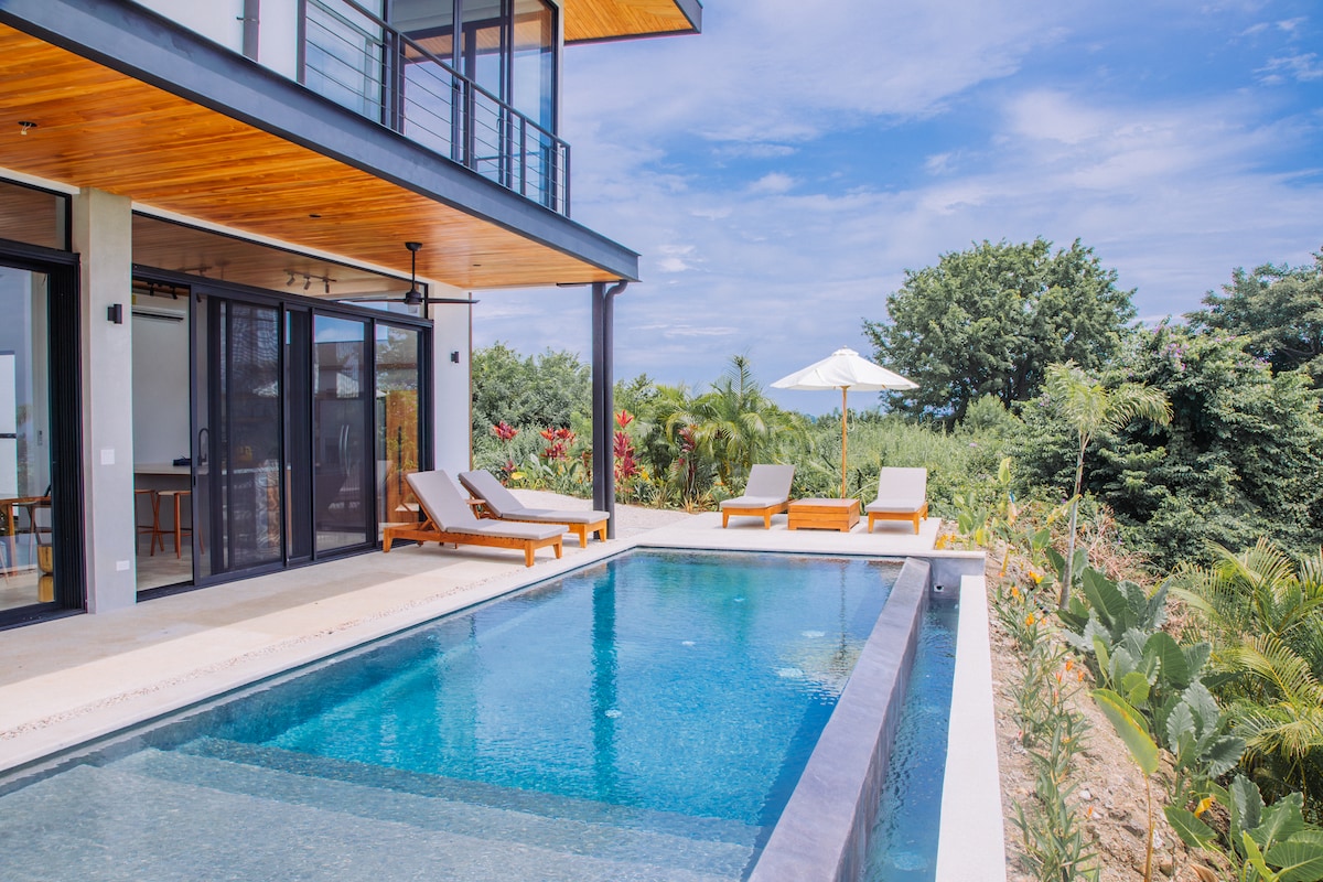새로운 열대 현대식 레지던스. 깨끗하고 세련되고 콘크리트 바닥, 개방형 콘셉트, 전용 수영장으로 이어지는 접이식 유리 벽. 카사 마리포사 (Casa Mariposa) 또는 '버터플라이 하우스 (Butterfly House)' 는 독특한 미드 센추리 모던 루프 디자인의 이름을 따서 지어졌습니다. 방 3개 + 킹사이즈 침대 3개, 욕실 3.5개, 업무용 책상, 아일랜드 주방, 강력한 와이파이, 새로운 가전제품 및 셰프 주방, 야외 바비큐 시설. 자전거 4대 포함. 1대 주차 가능. 시내와 해변까지 짧은 산책. 프라이빗하고 조용합니다. 사마라에서 가장 멋지고 최신식 숙소 중 하나입니다!