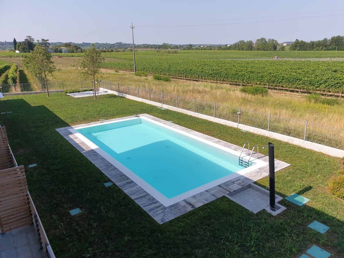 개조된 침실 1개짜리 아파트로 전용 정원에서 바로 수영장으로 들어갈 수 있습니다. 아늑하고 밝으며 모든 편안함을 갖추고 있습니다. 와이파이, TV, 에어컨. 바비큐를 즐기며 야외에서 휴식을 취할 수 있는 파티오. 전용 지붕 주차장. 역사적인 중심지와 호수에서 1km 거리에 있는 매우 조용한 지역. 슈퍼마켓이 100미터 거리에 있습니다. 해먹과 라운지 의자 2개, 목욕 수건을 무료로 이용할 수 있습니다. 수영장은 6월 1일부터 9월 30일까지 운영됩니다.