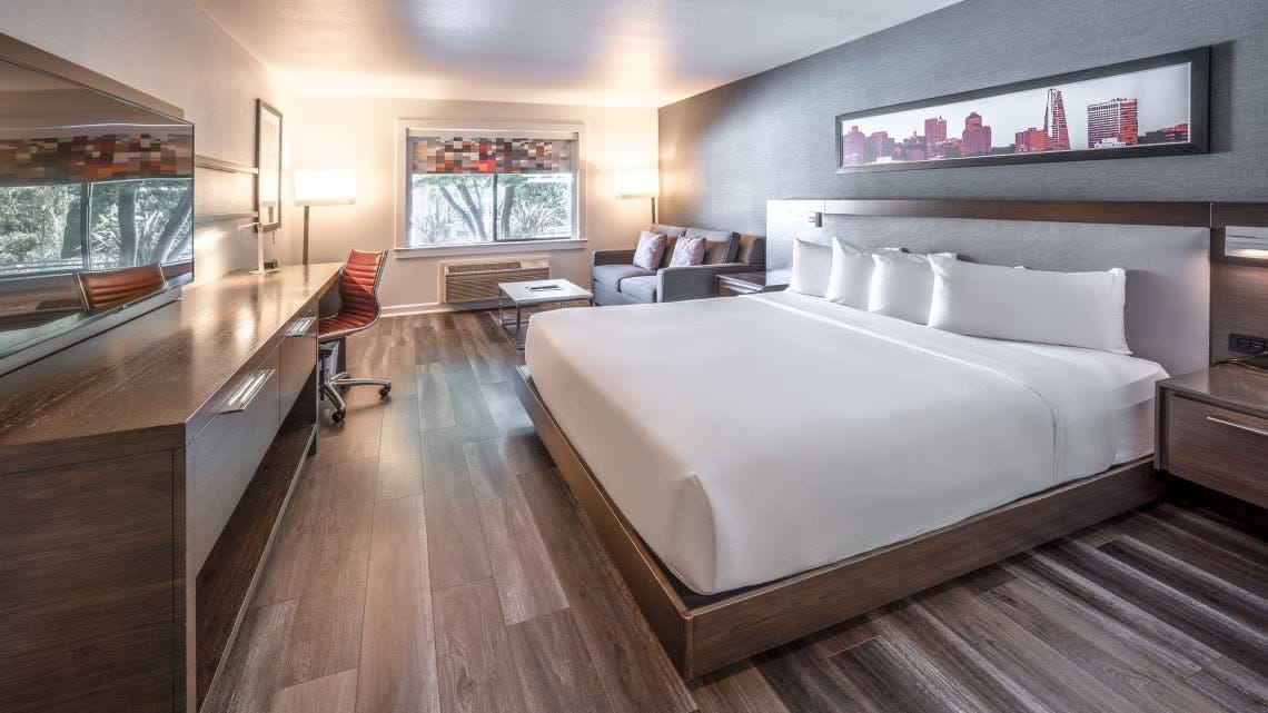 Experience our King room type at Shashi Hotel Mountain View, an Urban Resort. Conveniently, located in the heart of the Silicon Valley - walking distance to Shoreline Amphitheatre. Taste incredible cocktails and delicious bites at our Emerald Hour Bar designed by our Michelin-rated Chef. Enjoy complimentary amenities including our outdoor pool, fitness center, sauna and steam rooms. New for 2025 - daily wine tasting, yoga, zumba, and live music.