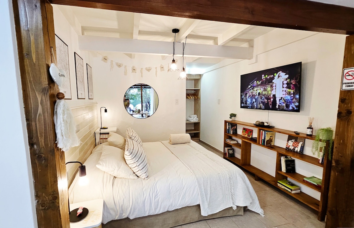 바릴로체에서 머무르는 동안 즐길 수 있는 미니 하우스, 2인용, 시민 센터에서 800미터 거리에 위치, 휴식을 취하기에 이상적인 환경이면서도 시내와 버스 노선에서 매우 가깝고, 주변에 녹지가 많습니다. 매우 편안한 침대, 침구, 수건, 좋은 인터넷, 광대역, 독서나 아침 식사를 즐길 수 있는 아름다운 데크 테라스를 갖춘 완비된 원룸입니다. 전자레인지와 가스레인지가 있습니다. 냉장고 숙소에 매우 친절한 반려동물이 있습니다. 입구에 계단이 있습니다.