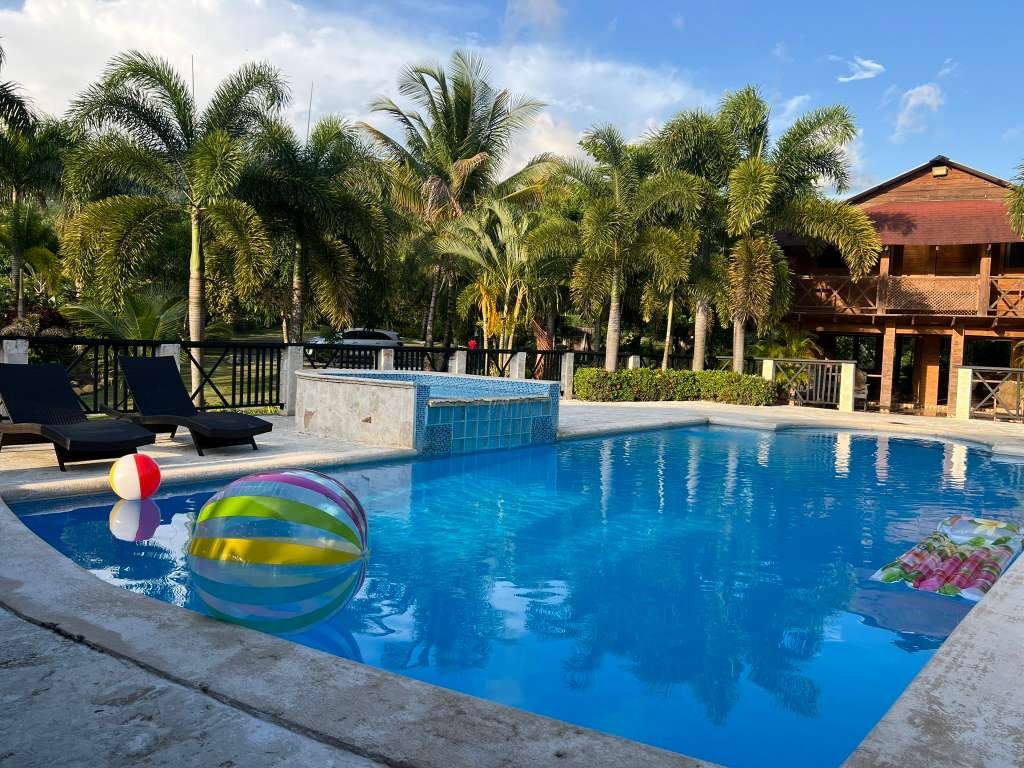 Finca con todas las comodidades a 25 minutos de Santo Domingo. Puede ser para estadías largas o cortas donde caben 12 personas (4 habitaciones con aire más un sofá cama en la sala con abanico de techo) o para pasadias de grupos (confirmar cantidad de personas antes de reservar). Tendrá a su acceso la casa, el gazebo con baño completo, wifi, Tv, Billar, equipo de música, piscina, jacuzzy con calentador, bbq de carbón, cancha de basketball, mesa de ping pong, juegos, amplios jardines y la granja