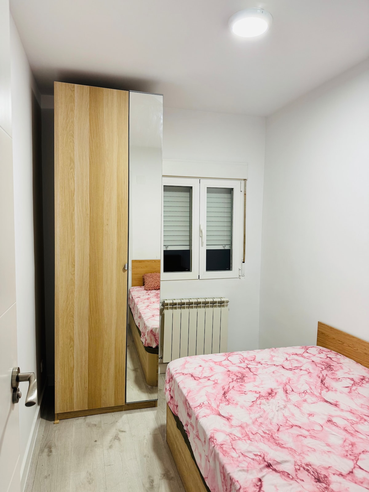 1층에 위치한 독립형 객실로 거리 수준의 외부 창문이 있습니다. 간이 주방과 전용 욕실이 있습니다. 이 공간은 공용이 아닙니다. 복도에는 출입구가 공용으로 마련되어 있습니다. 이 숙소는 관광객 임대용이 아닙니다. 업무, 교육 또는 여가 목적으로 임시로 임대됩니다. 교통이 편리한 지역에 위치하고 있으며, 슈퍼마켓, 레스토랑, 상점과 가깝습니다. 박물관, 엘부에네티로 공원, 아토차역, 203 공항 고속버스와 가깝습니다.