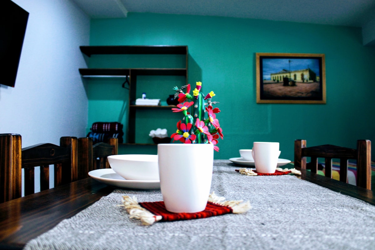 가상 투어를 통해 저희 스위트를 둘러보세요. 링크를 복사하여 붙여 넣으세요: https://my.matterport.com/show/?m=uzQyVNjCVuV 소파 베드가 있는 거실, 식사 공간, 냉장고와 인덕션 그릴이 있는 간이 주방이 있는 매우 넓은 아파트입니다. 마스터 침실에는 옷장이 있는 옷장과 넓은 욕실이 있습니다. 스위트에는 아름다운 테라스가 있어 오악사카에서 아침 식사와 쾌적한 오후를 즐길 수 있습니다. 와이파이가 있습니다. 게스트가 출입할 때마다 철저한 청소 및 소독을 실시합니다.