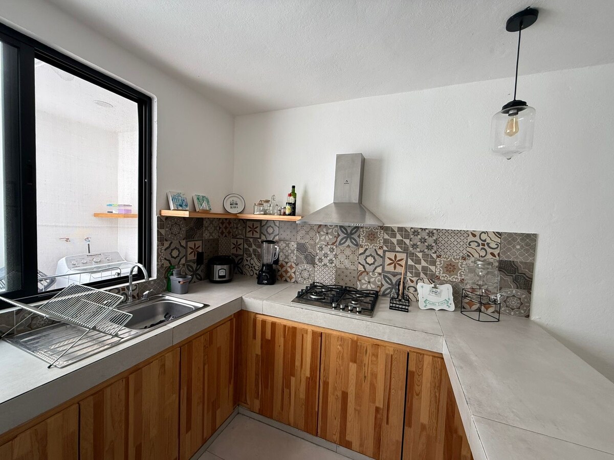 - 오악사카에서 편안하고 아름다운 숙박을 위해 필요한 모든 것을 갖춘 전체 로프트. 필요한 모든 것을 갖춘 주방. 오악사카의 역사적인 중심지에서 대중교통으로 25분, 택시 또는 개인 교통편으로 15분 거리에 있는 콜로니아 델 마에스트로 eN에 위치하고 있습니다. 태양열 히터가 있습니다. 7박 이상 숙박 시 수건 교체. 어린이 동반 불가. 자차가 있는 분께 추천합니다. - 하루에 200MXN의 추가 결제를 하시면 온수가 나오는 미니 수영장을 이용하실 수 있습니다.