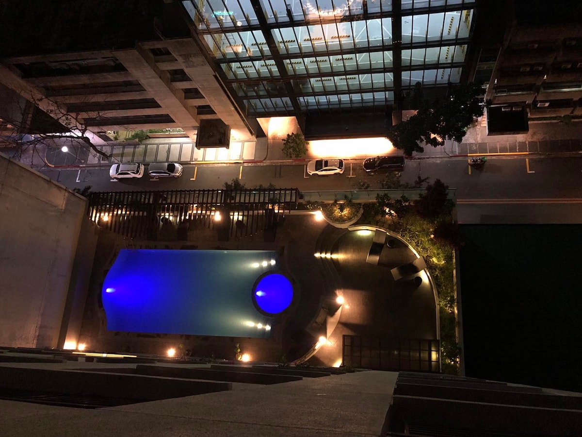 그린벨트 몰 근처의 발코니+수영장 및 헬스장이 있는 스튜디오