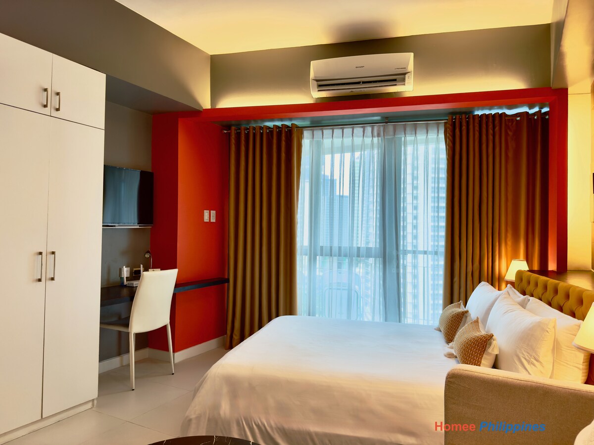 Enjoy a stylish stay in this centrally located studio in the heart of Makati Central Business District, close to shopping, dining, nightlife, hospitals, schools, church, and airport access. This newly furnished and remodeled 25 SQM corner unit is located on the 21st floor and offers BREATHTAKING VIEWS of Makati and Manila Bay. The building features FREE POOL & GYM access on the 6th floor (GYM FEES APPLY) PARKING Available (FEES APPLY), and 24-hour security—perfect for business or leisure stays.