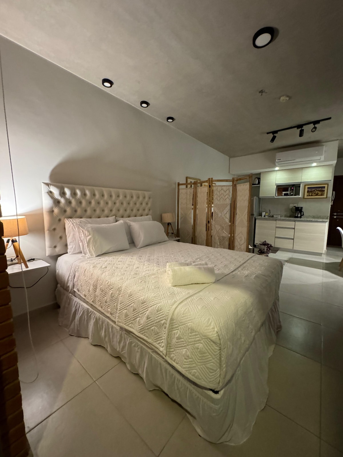 Exclusivo departamento en el ΓΊltimo, 16vo piso con terraza privada. Excelente ubicaciΓ³n en la zona vip residencial de AsunciΓ³n. Terraza privada con parrilla, comedor exterior para 8 personas y Γ‘rea de estar. Vista panorΓ‘mica de la ciudad y atardecer en la BahΓa. Cuenta con un dormitorio matrimonial sΓΊper king en suite con TV Smart y servicio de TV Cable. Otra habitaciΓ³n doble en suite, y una habitaciΓ³n pequeΓ±a con cama individual, que cuenta solo con ventilador y baΓ±o enfrente.