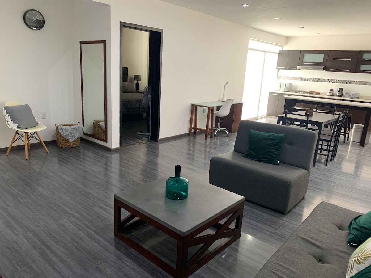 여행자가 편안한 밤을 보내는 데 필요한 모든 것을 갖춘 새로운 미니멀한 아파트입니다. 여러 지역을 연결하는 거리 중 하나에 위치하고 있어 위치가 좋습니다. 맞은 편에는 OXXO 상점이 있고, 옆에는 치과와 버스 정류장이 있습니다. 집처럼 편안하게 느끼실 수 있고 교통 수단이 많습니다.