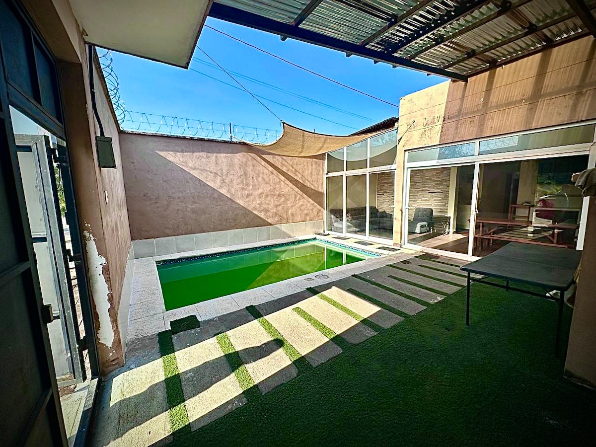 아름다운 숙소 100% 스마트! 최대 12명까지 수용 가능, IRTRA에서 단 4분 거리. 전용 수영장 및 자쿠지/온수 없음. 에어컨이 설치된 침실 3개, 욕실 3개. 차고 및 야외 주차장에 최대 8대의 차량을 주차할 수 있습니다. 평화롭고 조용합니다. 연중무휴 보안 프라이빗 콘도미니엄 라스 푸엔테스. 산타 마리아 그릴, 피자 오븐, 장작 난로, 웨버 주전자, 스마트 사운드 시스템, 전용 수영장, 자쿠지가 갖춰진 야외 주방이 있는 넓은 뒷마당에서 휴식을 취해보세요. 넷플릭스, 스포티파이, 아마존 뮤직/비디오, 엑스엠 라디오