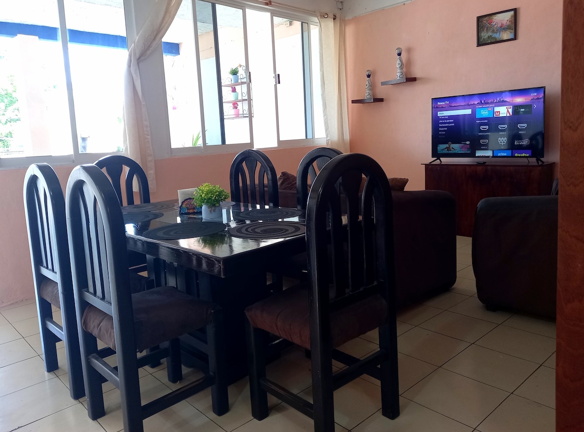 Disfruta de la sencillez de este alojamiento tranquilo y céntrico.nos encontramos en una excelente ubicación. Durante tu estancia tengan la seguridad y confianza de que estaremos al pendiente por cualquier cosa que necesiten para brindarles un excelente servicio . Sera un placer ayudarlos. Y recomendarles buenos lugares depende de sus necesidades y gustos .