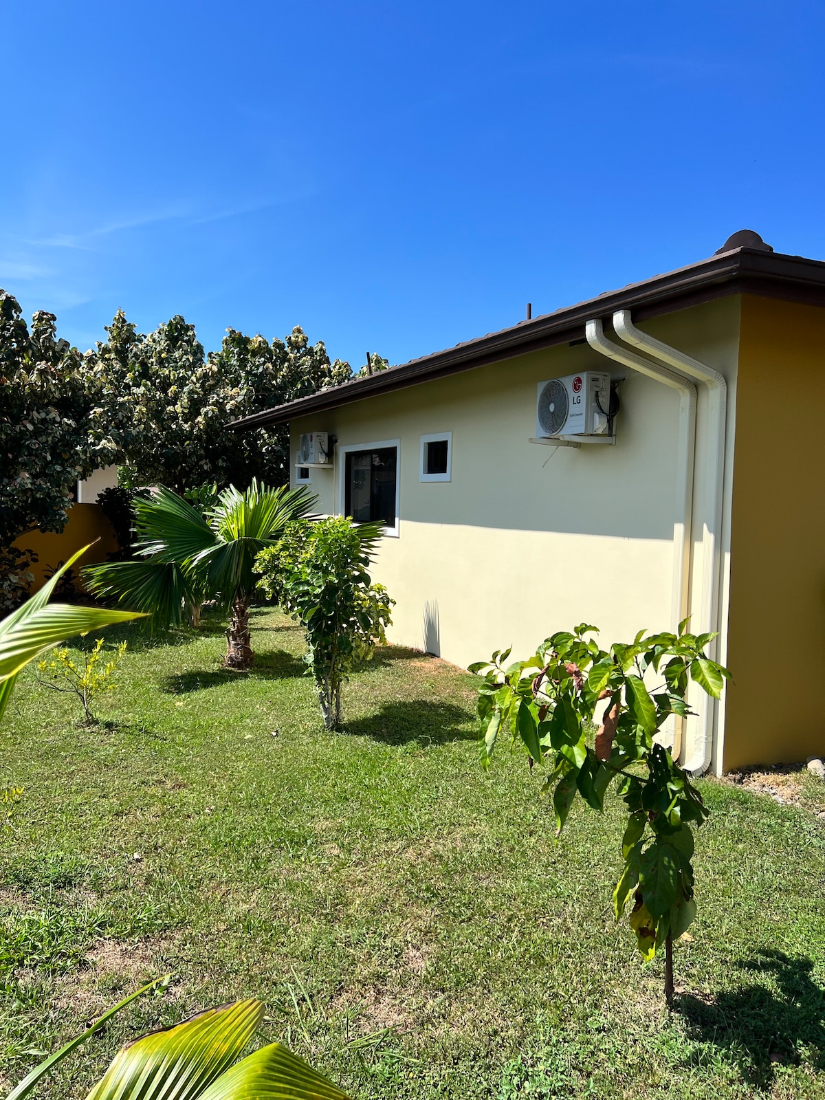 Relájate con toda la familia en este tranquilo lugar, a solo 10 minutos del centro de David y 25 minutos del turístico Boquete. Muy cerca encontrarás centros comerciales, restaurantes y servicios, pero lo suficientemente alejado del bullicio de la ciudad. Un espacio seguro, cómodo y lleno de detalles para que disfrutes tu estadía. Casa segura con 3 recámaras, terraza estilo Café-Bar, patio con asador y gazebo, aires acondicionados y todas las comodidades para disfrutar tu estadía.