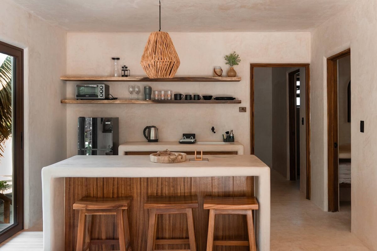 모래사장에서 코랄 비치 방갈로를 즐겨보세요. 천연 소재로 설계된 이 숙소는 킹사이즈 침실 1개, 킹사이즈 소파 베드 1개, 욕실 2개를 갖추고 있습니다. 주방과 거실은 테라스와 나무 데크로 연결되어 있으며, 전용 온수 수영장에서 바다를 내려다볼 수 있습니다. 2024년 12월에 완공된 이 빌라는 완전히 새것입니다. 게스트는 야자수 사이에 해먹과 비치 파라솔이 있는 공용 인피니티 풀도 이용할 수 있습니다. 멕시코 해안을 즐기기에 쉽고 조용한 장소입니다.