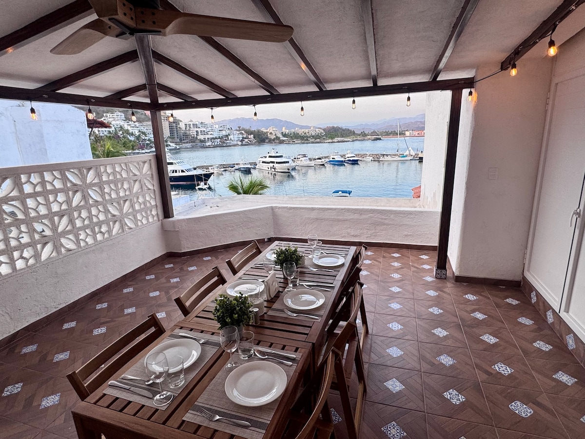 Loft con espectacular vista a la Bahรญa Puerto las Hadas, hermoso lugar para disfrutar en pareja รณ en familia, espacios que se conectan con la naturaleza y el ocรฉano, la alberca con vista al mar es perfecta para relajarte, cuenta con chapoteadero para los pequeรฑos de la familia, el acceso a la playa del condominio se encuentra justo abajo del รกrea de la alberca, por lo que podrรกs llegar caminando, el Loft cuenta con Lavasecadora, Wi-fi, TV por cable, A/C y cocineta, perfecto para estancias largas