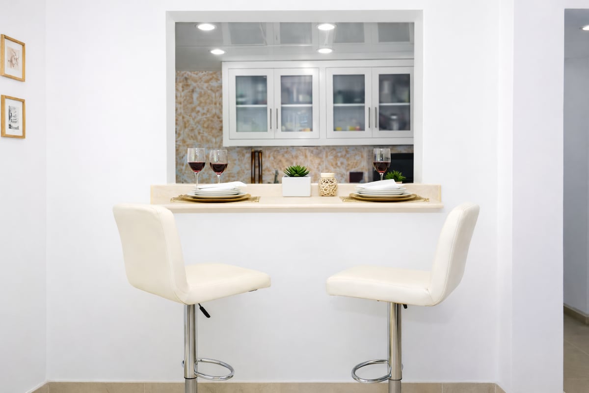 아름답고 넓은 2 룸 아파트는 후안 돌리오에서 최고의 경험을 제공하기 위해 완비되어 있습니다. 넓고 멋진 가구와 75인치 텔레비전과 사운드 장비를 갖춘 아늑한 거실을 갖추고 있어 영화관처럼 좋아하는 영화와 드라마를 즐길 수 있습니다. 또한 퀄리티 높은 미국식 매트리스가 있어 편안한 휴식을 보장합니다. 해변에서 도보로 2분 거리에 있습니다. 8가지 테이블 게임이 준비되어 있습니다.