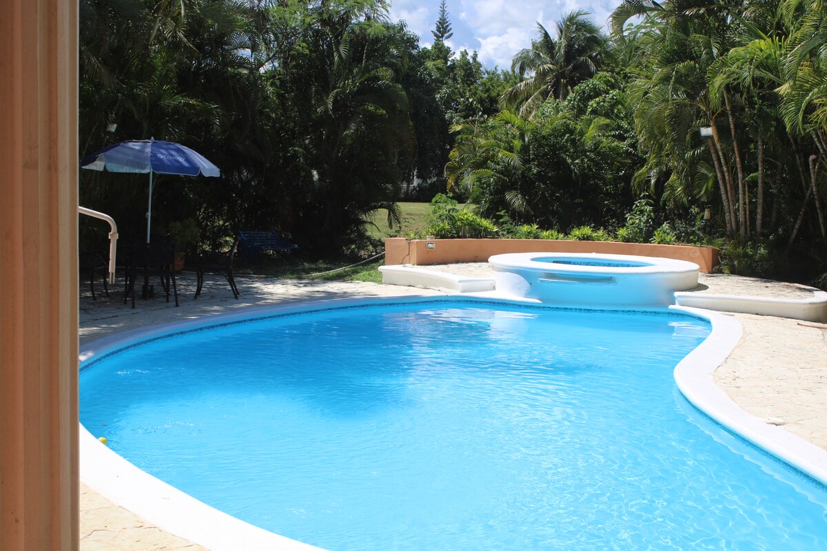 킹사이즈 침대! - 추가 게스트를 위한 에어매트리스 사용 가능. 셰프 이용 가능! (하루 125달러) (조식, 점심, 저녁) - 식료품 미포함- 공항에서 25분 거리 (SDQ) *체크인 전에 게스트 목록을 보내야 합니다* 수영장, 자쿠지. 전문적으로 관리되는 잔디. 바비큐, 당구대. *골프장 앞* 해변(차로 1분) 클럽 입구에서 스피커, 의자, 테이블을 저희가 제공합니다! -추가 요금(생일 파티, 특별 이벤트, 뷔페, 추가 게스트 요금, DJ)