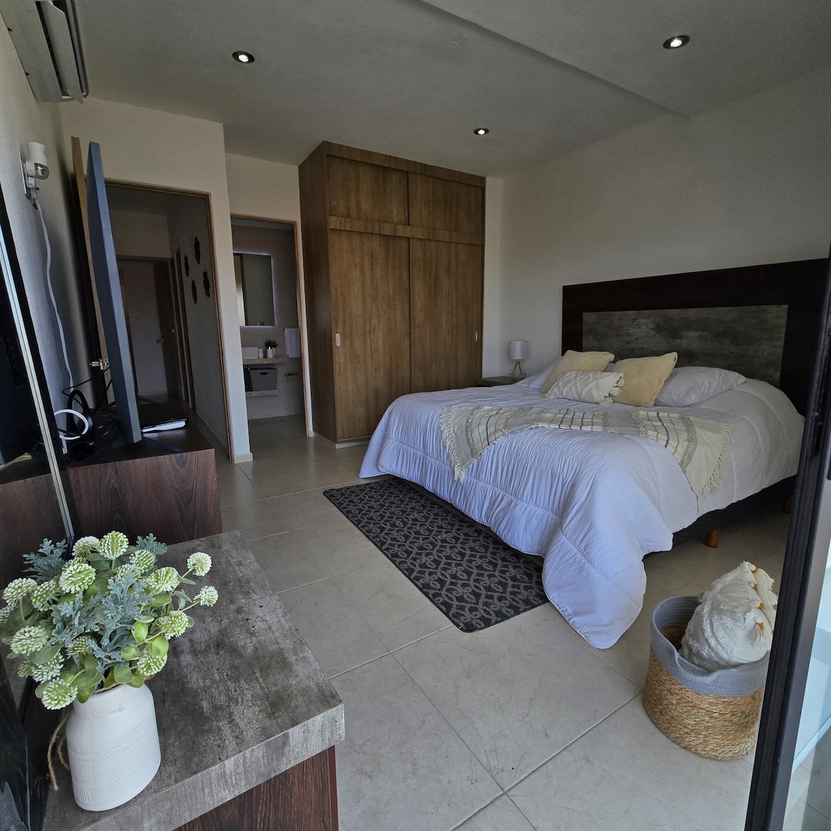 Departamento urbano moderno, totalmente nuevo y muy seguro, cuenta con 2 habitaciones y dos baños completos Excelente ubicación, se encuentra a 5 minutos en coche del centro comercial la Isla, 5 minutos de Chedraui Selecto, 6 minutos del Expo de mundo imperial, 7 minutos del Aeropuerto, menos de 8 minutos de las playas más cercanas y a 15 minutos de la playa Bonfil Cuenta con alberca, fibra óptica de 80mbps, Spotify, Netflix, televisión por cable y Aire acondicionado en todos los espacios