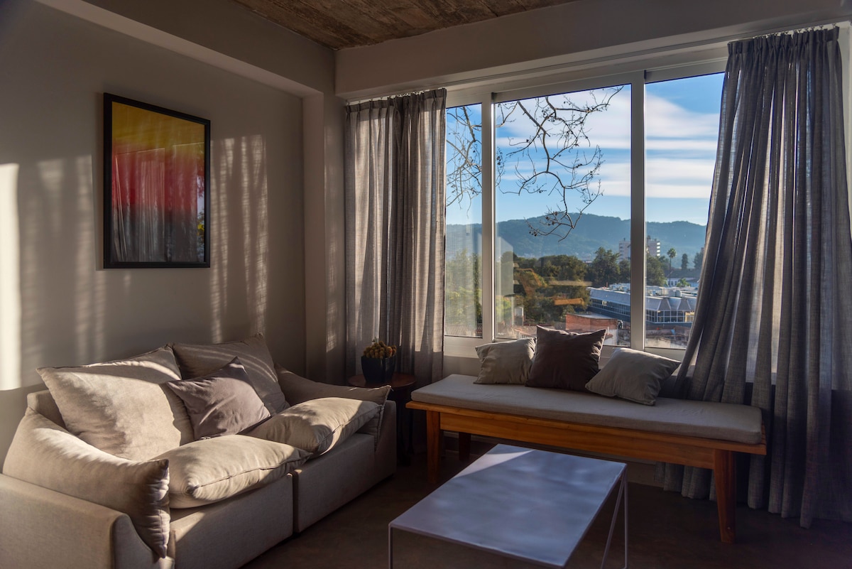 도시 중심부에 위치한 아늑한 원룸. 이 공간은 매우 밝고 현대적이며 편안하고 조용하며 두 사람을 위해 설계되었습니다. 매우 잘 갖추어져 있을 뿐만 아니라 도보, 대중 교통 또는 개인 교통으로 이동할 수 있는 안전한 지역입니다. 창문에서 도시를 둘러싼 언덕과 일출을 볼 수 있습니다! 수도를 여행하고 알고 싶은 사람들뿐만 아니라 짧은 숙박이나 통과하는 사람들에게도 이상적인 숙소입니다.