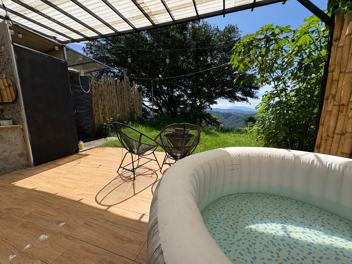 Disfruta de una estancia placentera rodeado de paz y naturaleza en nuestra cabaña. Todo lo que necesitas para una noche romántica inolvidable! La habitación tiene una vista espectacular hacia el volcán y la ciudad de panchimalco. En la terraza hay jacuzzi con hidromasaje, fogata y cine al Aire libre, una experiencia ÚNICA!! Además de sala de star con juegos, libros modernos y si te sientes divertido… columpio para adulto. Todo lo que necesitas para conectar con tu pareja!