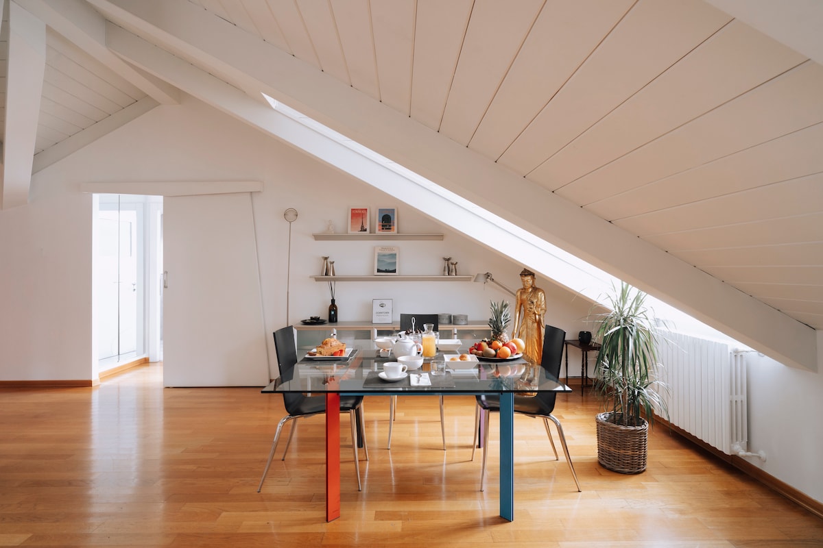 토리노 역사 지구의 옛 광채를 되찾은 최근 리모델링을 마친 아파트로 로마 사원 4 곳의 지붕을 내려다 보는 전망을 자랑합니다. 로프트는 넷플릭스와 아마존 프라임이 있는 TV부터 세탁기/건조기, 식기 세척기, 네스프레소 머신에 이르기까지 모든 편의시설을 갖추고 있습니다. 모든 커플 및 싱글 여행객에게 적합하며 최대 3명까지 수용할 수 있는 매우 편안한 안락 의자도 갖추고 있습니다(CIR: 001272-AFF-00175)