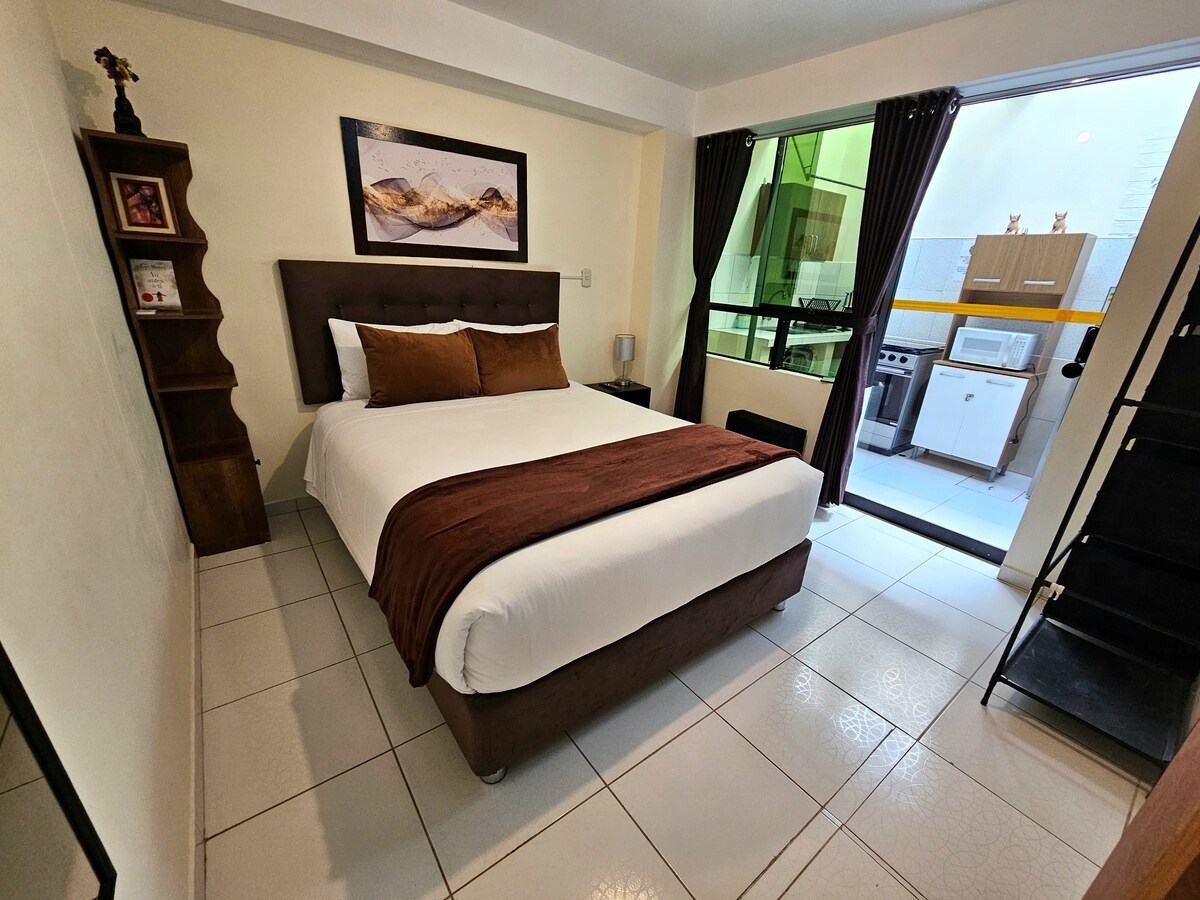아늑하고 조용하며 중심부에 위치한 숙소를 즐겨보세요. 아르마스 광장과 가깝고, 도보로 10분 거리에 있습니다. 저희의 전략적인 위치로 주요 관광지를 방문할 수 있습니다. 근처에는 레스토랑, 피자집, 여행사, 세탁소 및 기타 편의시설이 있습니다. 이 미니 아파트에는 전용 욕실이 있는 편안한 침실과 전용으로 사용할 수 있는 시설이 완비된 식사 주방이 있습니다.