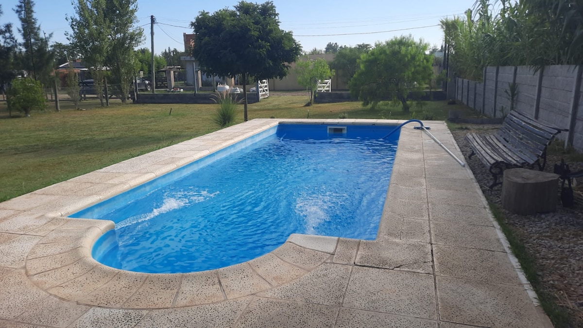 이 숙소는 현대적인 편의시설과 기능적인 경험을 제공합니다. 편안한 객실 2개, 수영장이 있는 커다란 나무 공원, 휴식을 취하고 정원을 즐길 수 있는 완벽한 갤러리를 즐겨보세요. 시설이 완비된 주방, 스코틀랜드 샤워 시설, 와이파이, 크롬캐스트가 있는 TV가 있습니다. 5명을 수용할 수 있어 전통적인 나라 아사도를 즐기면서 순수한 공기를 즐기고 자연을 사색할 수 있습니다.