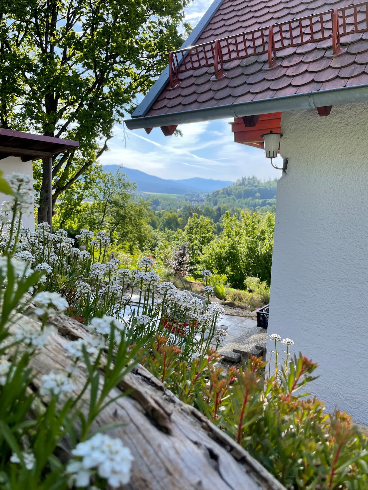 Sehr helle, neue 2 Zimmer Wohnung mit direktem Zugang zur großzügigen Gartenterasse mit WEBER Gasgrill zur freien Verwendung und alleiniger Nutzung. Blick über den Flanitzbach zu den Gläsernen Gärten Frauenau. 5 min vom Bahnhof entfernt. Küche mit folgender Ausstattung: Kühlschrank, Herd, Spüle, Geschirr usw. Schwedenofen im Schlafzimmer. Sehr ruhige und idyllische Lage. Honig von eigenen Bienen und gratis Waldwasser. Eigenes neues Bad mit Regenwald-Dusche & WC. WLAN vorhanden.