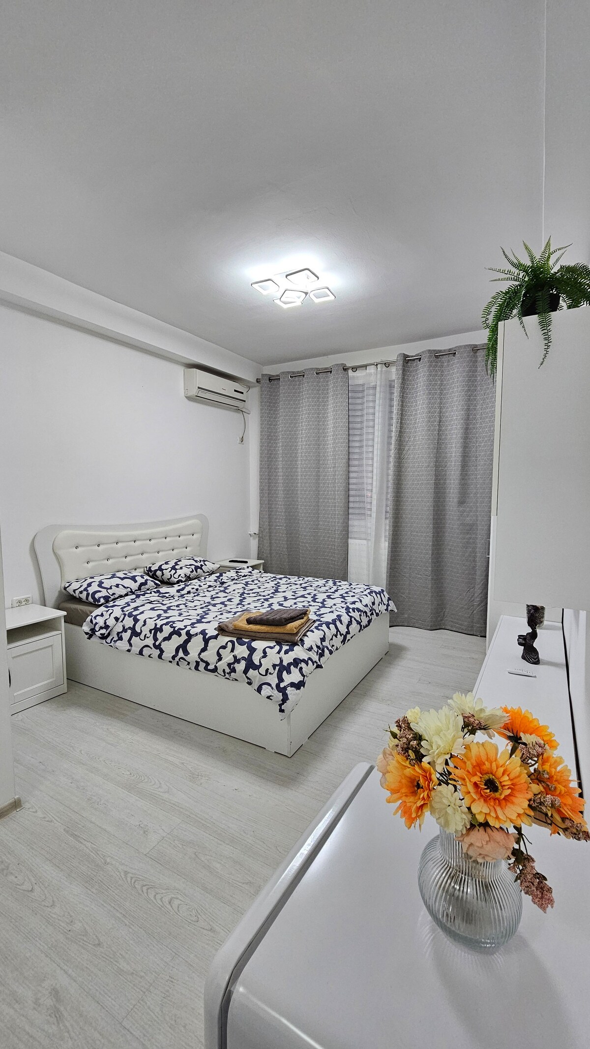 도심에 위치한 세련되고 현대적인 아파트의 편안함을 즐기세요. 도심 휴양지나 장기 숙박에 이상적입니다. 현대적인 디자인과 완벽한 시설을 갖춘 이 숙소는 가족, 친구 또는 출장자에게 완벽한 선택입니다. 제공: 편안한 침실 2개(더블 침대), 넓은 거실, 현대적인 욕실 2개(하나는 샤워기, 다른 하나는 세탁기), 완비된 주방(오븐, 호브, 냉장고, 전자레인지, 식기세척기), 스마트 TV, 와이파이. 2층. 중앙