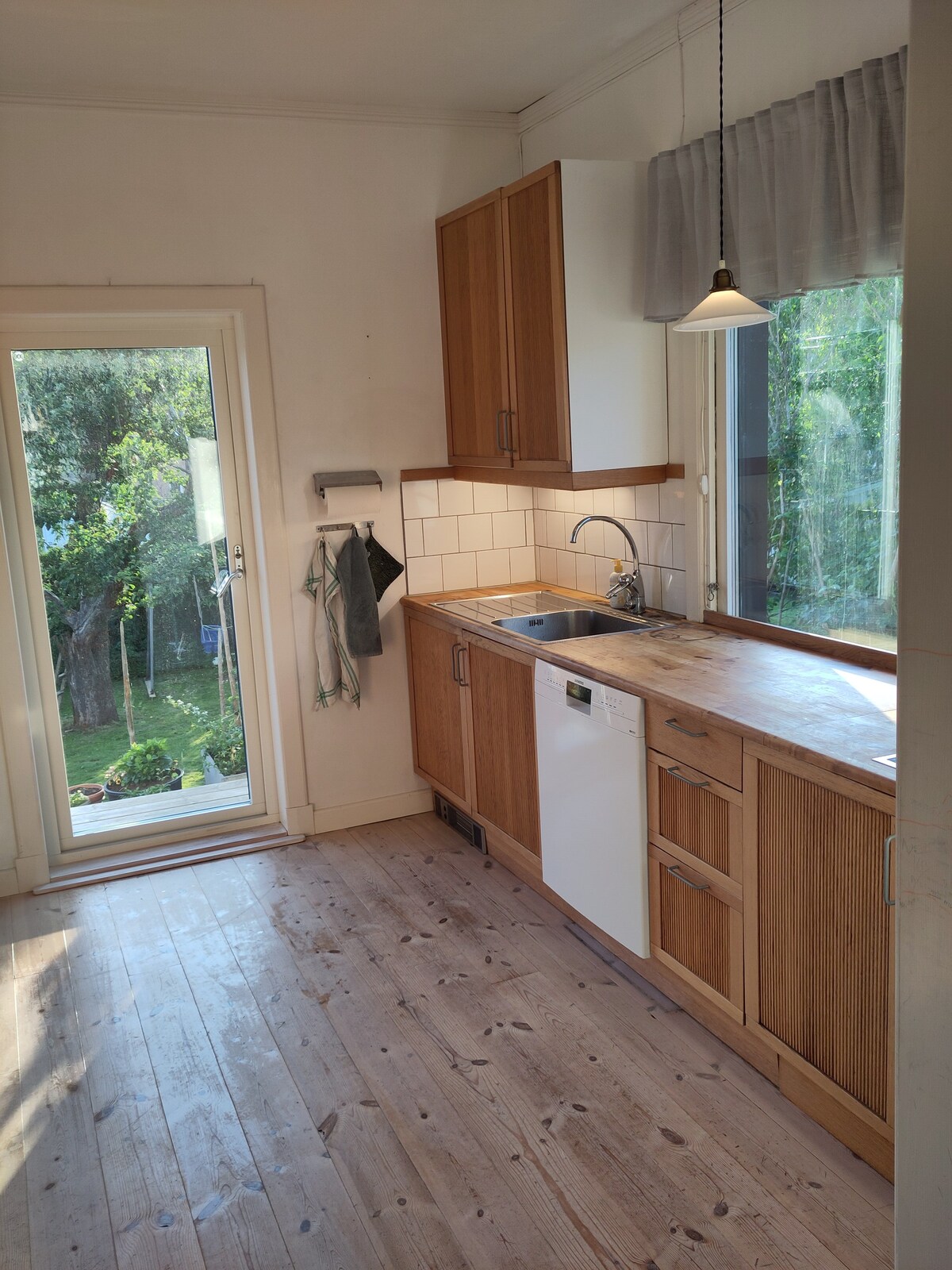 새로 리노베이션하고 가구가 완비된 60평방미터 넓이의 아파트로 방 2개와 주방으로 구성되어 있습니다. 이 아파트는 냐 바르베의 막다른 골목의 조용하고 경치 좋은 지역에 위치한 세기의 저택에 있습니다. 냐 바르베는 예테보리 시내에서 10분 거리에 위치한 조용한 바닷가 지역입니다.