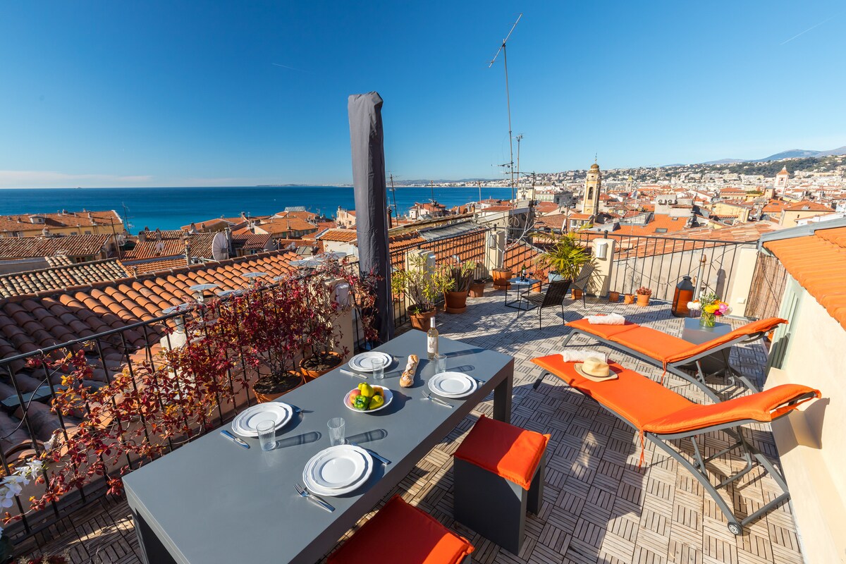 구시가지의 뤼 뒤 말로나에, 조용하고, 해변에서 도보로 4분 거리에, 샤토 언덕에서 에스테렐까지 바다의 파노라마 전망을 자랑하는 옥상 테라스가 있는 매우 조용한 아파트를 제공합니다. 햇살이 잘 드는 12m² 테라스. 편안한 아파트: 에어컨, 와이파이, 완비된 주방과 샤워실. 별도의 방. 거실에 큰 소파 베드. 니스에서 도보로 매우 즐거운 시간을 보내기에 이상적인 위치입니다. 곧 뵙겠습니다. 반려동물 동반 불가.