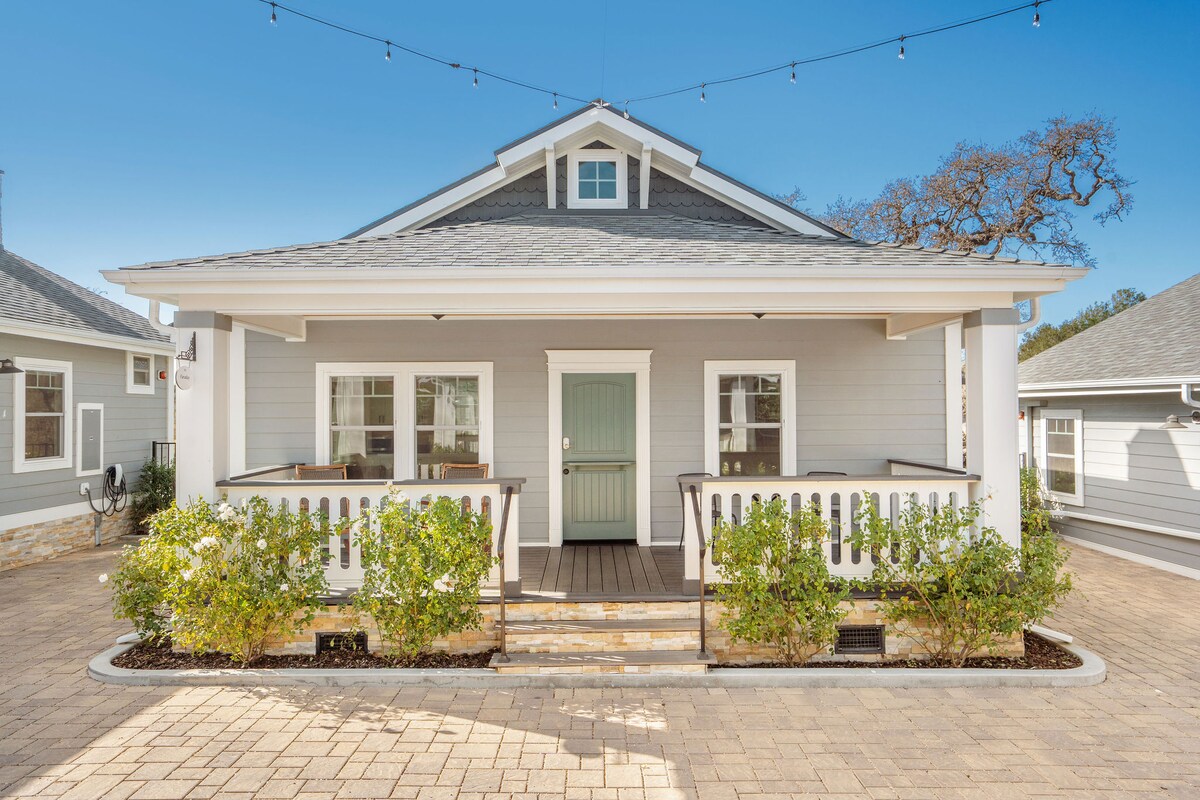 Polo House and Bungalows offer stylish, private studio bungalows just one minute from downtown Santa Ynez. Each bungalow features a spa-style bath, kitchenette, luxury linens, and a private porch. Guests enjoy complimentary breakfast daily from 8–10am and wine tasting from 4–6pm in the main hotel lobby, plus on-site parking and select EV charging.