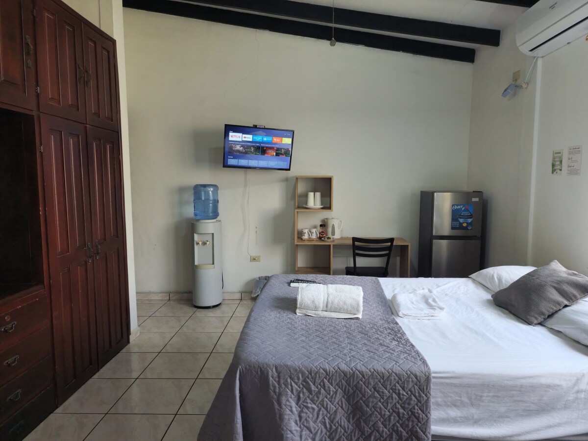 스튜디오는 좋은 위치에 있는 조용한 곳을 찾는 2인에게 이상적인 모든 시설이 매우 잘 갖춰져 있습니다. 간이 주방, 퀸사이즈 침대, 업무 공간, TV, 전용 욕실이 있습니다. 스튜디오는 2층입니다. 🎯▶️현재 수영장은 유지 보수 중이므로 이용할 수 없습니다. 방문은 허용되지 🚫 않습니다. 👮동반자 신분증 🪪 이미지를 요청합니다. ⚡발전기가 없습니다. 모든 규정을 고려하세요.