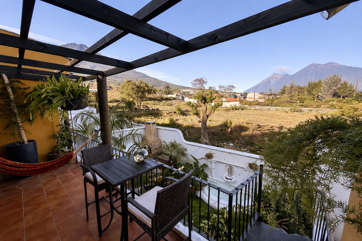 Cozy, compact cabin (tiny cabin style) with a fireplace and jacuzzi, perfect for relaxation. Ideal for couples seeking nature, peace and quiet, a forest setting, comfort, and tranquility. Just 20 minutes from Antigua and 5 minutes from local restaurants, with access to hiking and biking trails. Perfect for a relaxing getaway, solo travel, or working remotely in a peaceful environment.