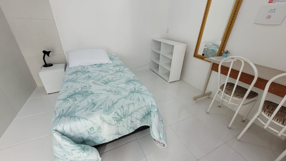 주택가에 위치한 편안하고 아늑한 스튜디오. UFSC와 UDESC에서 가깝고, 시내에서 9km 거리에 있습니다. 조용하고 차분한 숙소로 숙면을 취할 수 있습니다. 휴식을 취하고 커피와 일광욕을 즐길 수 있는 외부 공간도 마련되어 있습니다. 마음에 드실 거예요! 주방, 더블 침대, 온수가 나오는 샤워실, 옷장, 에어컨, 와이파이, 침구, 담요, 수건, 히터가 완비되어 있습니다.