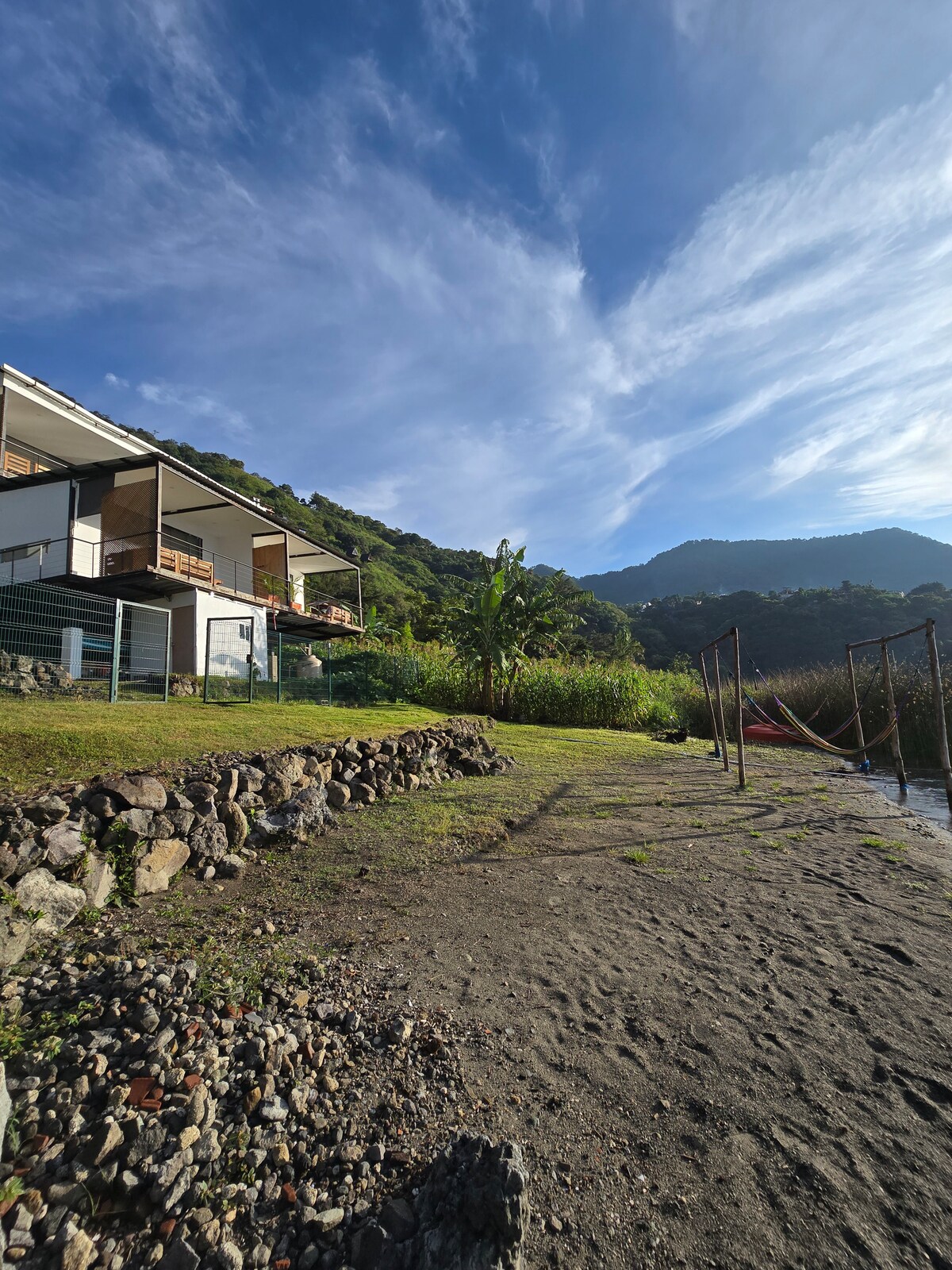 세계에서 가장 아름다운 호수인 과테말라 아티틀란 호수의 호숫가에 위치한 새로운 현대적인 숙소입니다. 태양광으로만 작동하는 이 친환경 에너지 숙소에는 침실 3개와 욕실 3.5개, 대형 욕조, 축구장, 현대적인 선착장이 있습니다. 강력한 메시 와이파이 네트워크를 갖춘 초고속 스타링크 인터넷으로 휴식을 취하거나 업무를 보세요. 주택가이지만 레스토랑/바까지 도보로 단 5분 거리입니다. 태양열 난방 욕조는 비오는 날이나 흐린 날에는 뜨겁지 않습니다.