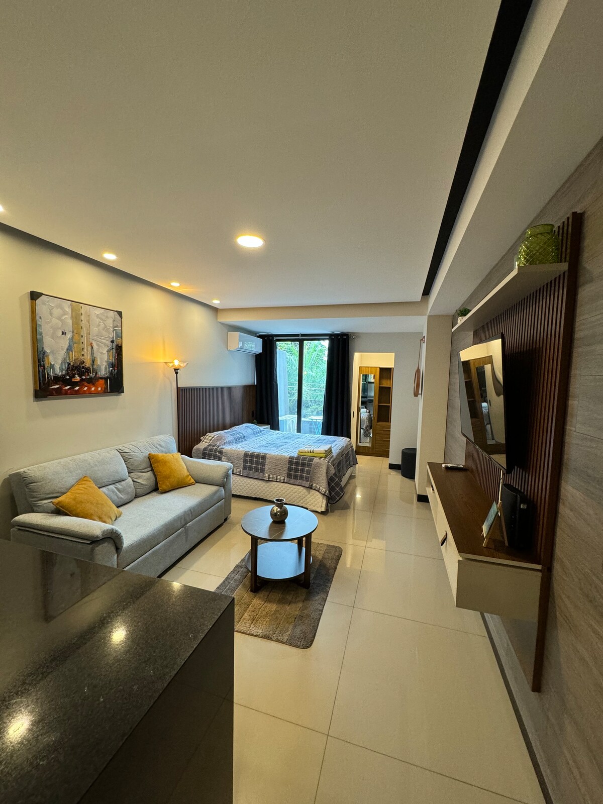 도심에서 즐기는 휴식 ✨ 에키페트롤에 위치한 고급스러운 스카이럭시아 건물 5층에 있는 아늑한 아파트입니다. 퀸사이즈침대 🛏️ 온수 욕실 🚿 주방시설 완비 🍳 와이파이 💻 45인치 TV 📺 에어컨 ❄️ 자연광 ☀️ 즐거운 시간 보내세요... 수영장 🏊♂️ 헬스장 🏋️ 사우나 ♨️ 홈시네마 🎬 파노라마 뷰를 감상할 수 있는 곳 🌇 편안함, 스타일, 완벽한 위치! ❤️