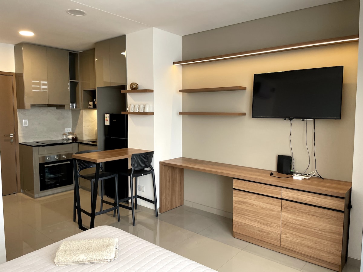 최고의 위치에 있는 완비된 새 스튜디오. 업무와 휴식 모두에 적합합니다. 빠른 와이파이, 통합 주방, 편안함을 위해 설계된 현대적인 공간을 즐겨보세요. 도시 최고의 지역에 위치하고 있으며, 레스토랑, 카페, 주요 관광지와 가깝습니다. 콘도 수영장도 이용하실 수 있습니다. 연중무휴 보안과 평화로운 환경을 갖추고 있어 편안함, 편리함, 아늑한 분위기를 찾는 게스트에게 이상적입니다.