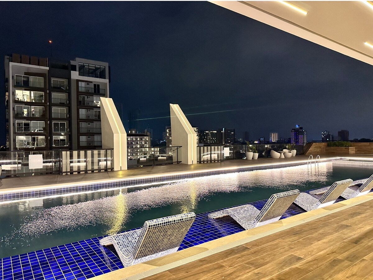 산타크루즈에서 가장 높은 에어비앤비와 도시 최고의 건물에서 즐거운 시간을 보내세요. 시설에서는 수영장, 스팀 사우나, 26층에서 아름다운 만자나 40 건물까지의 멋진 전망, 생태계의 자연, 우루보를 즐길 수 있습니다. 슈퍼마켓, 레스토랑, 쇼핑몰, 비즈니스 센터, 은행, 스파에서 몇 걸음 거리에 있습니다. 산타크루스에서 가장 높고 아름다운 레스토랑인 시엘로 스카이 바와 자르딘 데 아시아가 같은 건물에 있습니다.