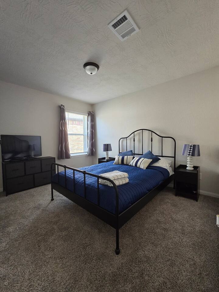 Our cozy retreat offers luxurious amenities: a soaker tub, Brand new A/C, high-speed WiFi, a 70-inch Roku TV, a chef's dream kitchen and an office set off on its own. The home is perfectly situated, a short drive from I-45 so you can quickly and easily travel North to Houston or South to Galveston. The neighborhood offers parks, ponds, walking trails and a dog park. This is the perfect spot for cruisers departing from Galveston or travelers wanting to experience the Greater Houston area.
